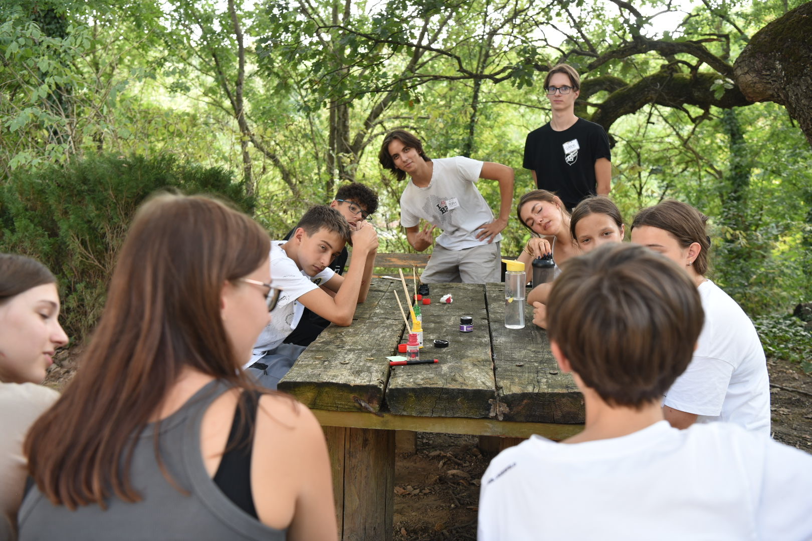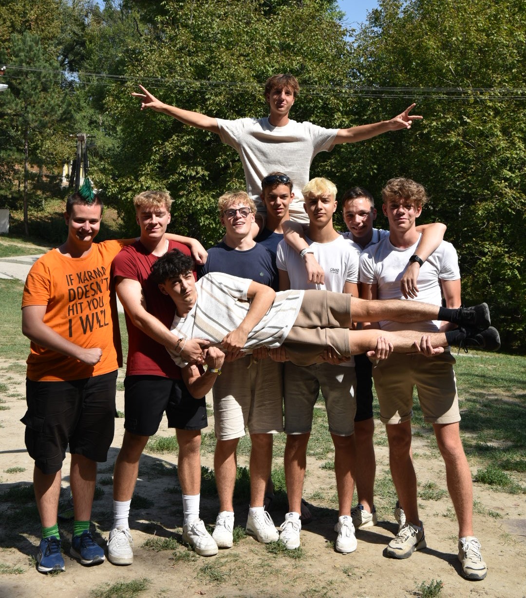 Mihelyt megérkeztünk, a gólyák megismerkedtek leendő osztályfőnökeikkel, majd elfoglalták szállásukat, mely többek között pingpong és csocsóteremmel is el volt látva, s egy nagy rétre nézett. A rövid szusszanás után az idei Olimpián (többé-kevésbé) utolsóként végzett 7 ország után elnevezett csapatokba szerveződtek, és kezdetét vette a lehetőségek sora, hogy visszaszerezzék országuk nemzeti büszkeségét. A pólófestések néhol remekműszámba menő elkészítése után a csapatokat hat állomáson különböző vicces feladatok (például történetmesélős játék) várták, miközben az egy-egy csapat elfogyasztotta kései ebédjét.