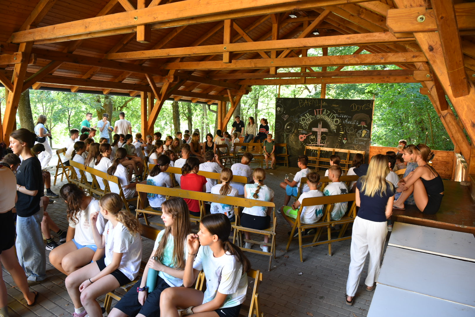 A nap fénypontja viszont a szállás előtti rét pavilonjában, vacsora után tartott „tábortűz” volt, ahol bár tűz nem is, de jó hangulat mindenképpen volt, gitárral és énekszóval.
