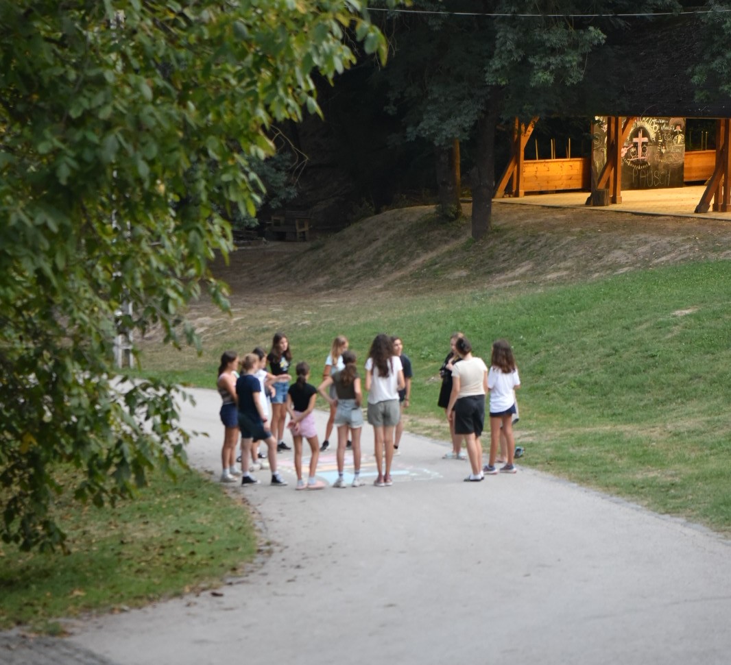 Reggel nyolckor az egész Eiffel-teret betöltötte a toldys gólyák és szervezők izgatott zsibongása, mely csak akkor csitult el, mikor a vonat jócskán késve megérkezett, mi megtaláltuk, majd elindult velünk Esztergomba. A vonat után néhány, a csoport méreteihez képest szűk busszal folytattuk utunkat Pé-li-föld-szent-ke-reszt felé, mely a szalézi rend kegytemplomából és annak ellátóépüleiből álló, idilli „település”. A rendháztól nem messze egy gyönyörű, Szent-kút névre hallgató forrás is fekszik.