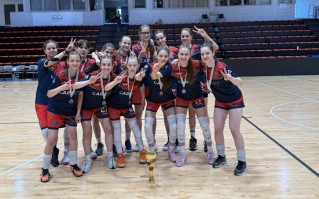 Liliána (7. a) ezüstérmes lett csapatával a korárlabda Nemzeti Leány Serdülő Bajnokság döntőjében.