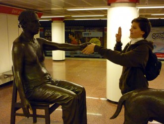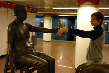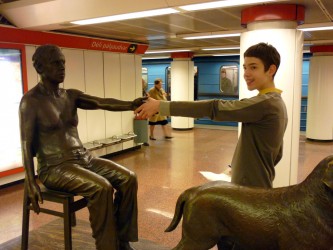 Mostanában az emberek többségének szeme előtt – ha útra kell kelniük – csak a végcél lebeg: a munkahely, az iskola, az otthon, esetleg mozi, könyvtár és még sorolhatnám. Azonban hajlamosak vagyunk a két végpont között lévő utat, amely köztereken, utcákon, metróállomásokon át vezet - az ott látottakkal, tapasztaltakkal egyetemben - valamiféle „kényszerű kellemetlenségként” megélni, amelyet el kell viselnünk, amíg megérkezünk. Nos, maga a Városjáró Vetélkedő lényege ennek a hozzáállásnak a tagadása. Ebben a versenyben a résztvevőknek meg kell találniuk, fel kell keresniük Budapest egyes eldugott, vagy csak annak gondolt helyeit, hogy az előre meghatározott kérdésekre válaszolni tudjanak. A feladatlapot évről-évre a végzős évfolyamból kikerült szervezőgárda állítja össze, úgy, hogy az egyre fejlődő technika új vívmányait (értem itt többek között az internettel rendelkező iPhonokat) ne lehessen segítségül hívni, hanem a csapatok kénytelenek legyenek valóban felkeresni az adott helyszíneket. Idén egy különleges, tematikus Városjáró készült: a verseny témája a 2-es metró köré szerveződött. A kérdések a megállókban – felszín alatt és felett – található objektumokhoz kötődtek. A teljesség igénye nélkül említenék pár kérdést: „Melyik Petőfi vers van a vitrin hátuljára írva?” (Astoria), „Milyen márkájú a Nemzeti Szálló ereszcsatornája?” (Blaha Lujza tér), „Kire néz Kovács Béla? És ő? Erről egy verset is írt. Mi a címe?” (Kossuth Lajos tér). A „száraz” [sicc!] kérdések mellett helyet kaptak „interaktív” feladatok is, pl.: „„Csak egy ugrás a Sugár” – áll a szlogenben. No de valójában mennyi az az egy az aluljáró kijáratától a Sugár legközelebbi bejáratáig?” (Örs vezér tere: itt az alujárótól kellett elugrálniuk a bejáratig, így mérve le a távolságot.), „Hozz a Gödörből egy programfüzetet!” (Deák Ferenc tér). Ezen kívül a klasszikusnak számító fotós feladatok is szerves részei voltak a versenynek, ebből láthat a válogatást a kedves Olvasó.