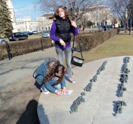 8. A tér Hűvösvölgy felőli részében van egy nagy járdasziget, mellette gyakran feltorlódnak a kocsik. Szórakoztassátok az unatkozó sofőröket egy jó kis orosz táncbemutatóval! Az eseményt örökítsétek meg az utókornak!