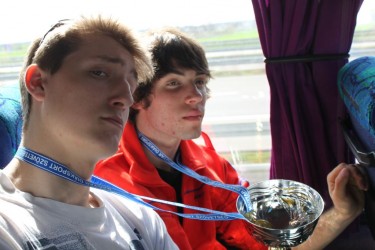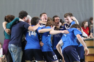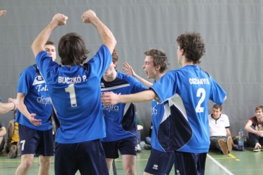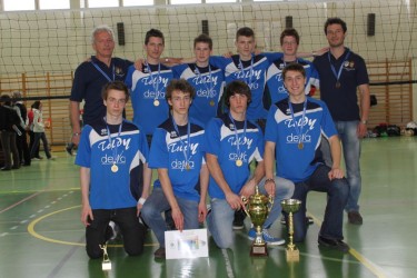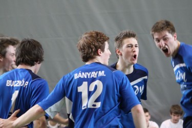 A fiúk ettől felbátorodtak, és elkezdtek felszabadultan, egységesen és lelkesen röplabdázni!!! Kiegyenlítettünk, az eredmény 2:2 lett, következhetett a mindent eldöntő 5. szett, ami azon a hétvégén már a fiúk 19. játszmája volt!!! 13:13-ig fej-fej mellett haladtak a csapatok, ekkor Takács tanár úr és Vaskó tanár úr azonban időt kértek. A fiúk borzasztó elszántan érkeztek vissza a pályára, és végül 15:13-ra megnyerték mérkőzést, ezzel elhódítva a 2011-es VI. korcsoportos amatőr fiú röplabda bajnoki címet!!!!