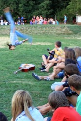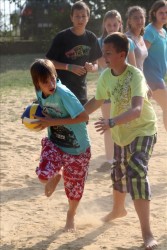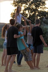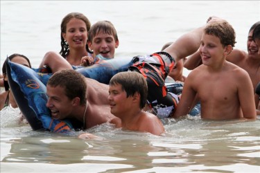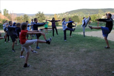A nap hátralévő részében volt még ebéd, Balatonban fürdés, további szekciók, majd végül a nap végét jelentő tíz óra. Igen, tíz óra, mert másnap se volt megállás, fél hétkor ébresztő, hétkor pedig kezdetét vette a reggeli torna, amit jómagam tartottam. Na most vagy tényleg élvezték, vagy csak megkedveltek, és nem akartak nagyon lelombozni, ugyanis olyan elánnal csinálták, amit még a saját Vaskó-tanár úr-féle testnevelés óráimon is csak ritkán láttam. Azért utólag is sok köszönet, jól esett :-).