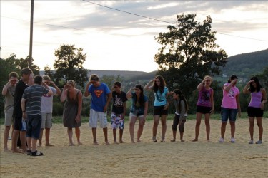 Pár óra alatt leértünk, utána negyedóra séta, cuccok lepakolása és már kezdődhettek is a különböző ismerkedős játékok. Ezek a játékok viszont a látszat ellenére nem is olyan egyszerű játékok! 70 ember nevét kéne megjegyezni minél hamarabb, és mi még előnyben voltunk, mert a saját évfolyamomat csak ismerem 5 év után, de az elsősök már nem biztos. Na, de mint említettem, minden simán ment, egy toldys mindent megold, így aztán ezt is. Mind a hetvenet…