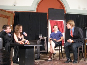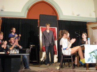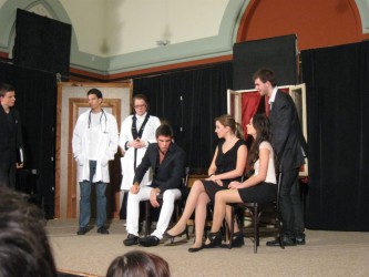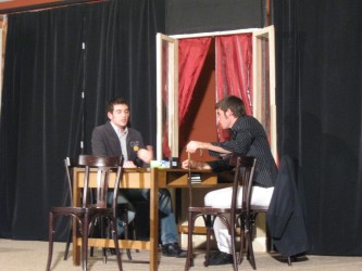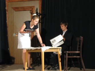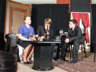 Viszont! Mint oly sok dolog az életben, ennek is két oldala van. A darab hosszúságával egyenes arányban növekszik a beleölt rengeteg munka, fárasztó nulladik órák, még fárasztóbb az őszi szünetet erre áldozni, ám a rengetek munkának egyértelműen meglett a gyümölcse. Rendkívül szórakoztató előadásban volt részünk, a két és fél órás előadás alatt csak azért nem szabadult el a pokol a sorok között, mert tényleg egy nagyon érdekfeszítő és szórakoztató darabot láthattunk. Ami nekem feltűnt, hogy sokszor volt egy-egy embernek rendkívül hosszú monológja, amit meg a legnehezebb megtanulni. Ezeket is mind hibátlanul adtátok elő. Gratulálok!