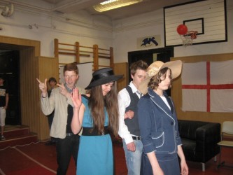 Ezek után nem kellett messzire mennünk, ugyanis a 2.b-sek Angliába vezettek bennünket. Nagyon vicces műsort csináltak, amin még az urakodócsalád tagjai is részt vettek. Itt is volt igazi angol tea, gingerbread, sőt még egy zenekar is szórakoztatott.