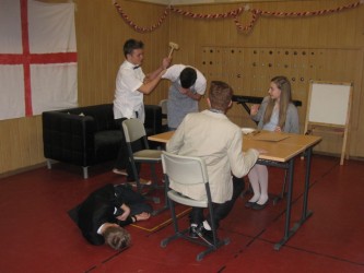 Pénteken a nagyobbak előadásait nézhettük meg. Ezen a napon az utazás Skóciában kezdődött a 3.b-seknél, akiknél egy igazi középkori várba voltunk hivatalosak egy lakomára.