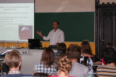 A különböző alvással kapcsolatos betegségekbe is beleástuk magunkat, elhangzott a paradox-insomnia kifejezés, ami annyit jelent, hogy azt álmodjuk, nem aludtunk egy szemhunyásnyit sem, ez a betegség azonban egészséges embereknél is előfordulhat. A parasomniáról is szó volt, ekkor a beteg álmában küzd, rugdos, üt. Ez a betegség állatoknál is előfurdulhat, amit egy vicces videóval támasztott alá az előadó.