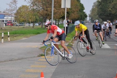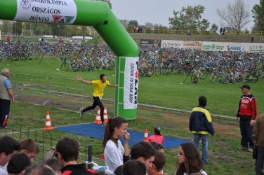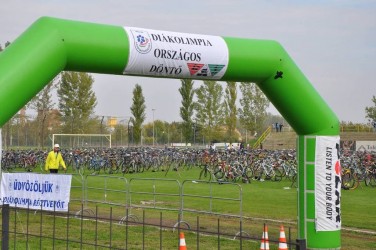 Az utunk Szekszárdra vitt, ahol találkoztunk a többi diákkal. Körülnéztünk, és annyi versenyző volt ott, mint égen a csillag. Később kiderült, körülbelül 1300-1400 versenyző volt ott, 200-300 testnevelőtanár, illetve a diákokhoz tartozó többezer szülő. Ijesztő. Körülnézünk, mindenfelé rohangáló kisebb gyerekek, álmosan sétálgató nagyobbak, és sok-sok bicikli. „Hova tesszük ezeket?”, kérdezhette bátran bárki. De a szekszárdiak megoldották, a labdarúgók kölcsönadták nekünk a stadionjukat, amit teljesen megtöltöttek a kerékpárok!