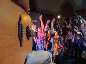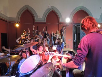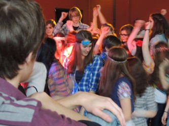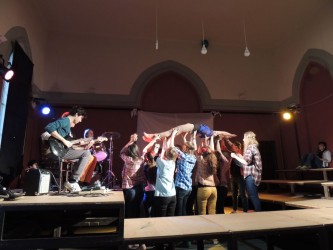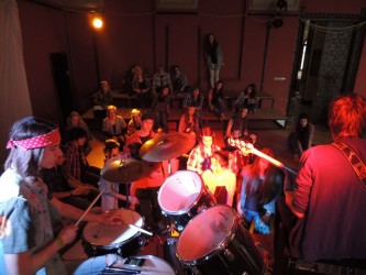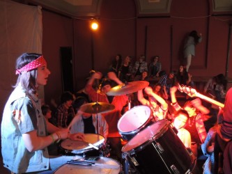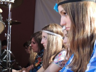 Az előadások idejére mi, teátristák szinte beköltöztünk a Toldyba. Este fél hatra a díszterem melletti osztálytermet már ellepték a jelmezek, kellékek, színpadi sminkek, szövegkönyvek, nasik és üdítők. Bemelegítettünk, beénekeltünk, megteremtettük az alaphangulatot. Jó érzés úgy színpadra állni, hogy tudjuk, minden szempontból bízhatunk egymásban.