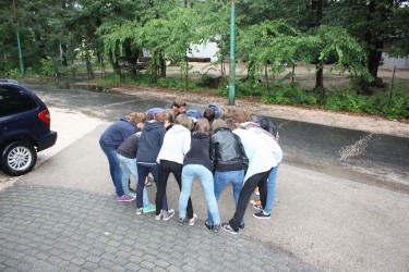A szállodában csapatokra osztottak minket, majd játékokat játszottunk, pólót festettünk, és a csapat nevét találtuk ki. Közben alakultak a barátságok.