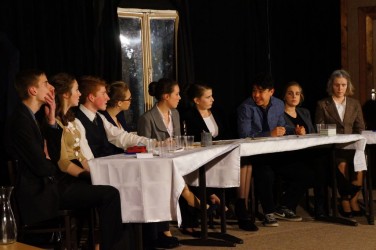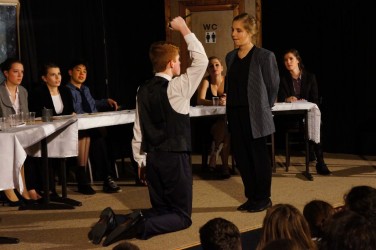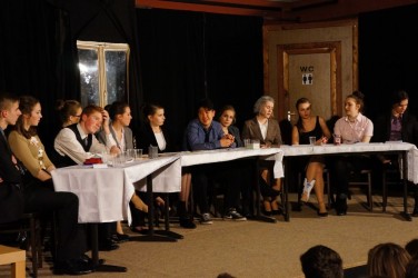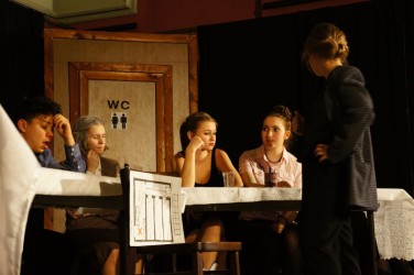 Az idén egy kevésbé „mozgalmas” darabot választottak, a szereplők szinte a darab egészében ültek egy asztal körül. Ennek ellenére az előadásuk nem volt unalmas. Remek színészi játékkal, jól megtanult szöveggel és kidolgozott, átélt karakterekkel kápráztatták el a nézőket. Egyetlen hibának csak azt tudnám felróni, hogy a hangeffektek néha túl halkak, néha túl hangosak voltak és így nem mindig váltak a darab előnyére.
