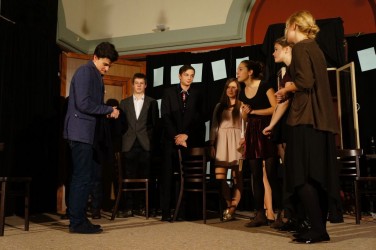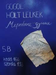 Az 5.b-től el nagyon szórakoztató és összeszedett játékot láthattunk, látszott, hogy már tapasztalt osztályszínjátszósokról van szó. A szereplők mind a maguk képére tudták formálni a saját karakterüket, ami - lássuk be - nem könnyű, hiszen nem kis feladat beleképzelni magunkat az 1800-as évekbeli Oroszország világába. Itt kiemelném Füredi Balázst, aki magát Csicsikovot testesítette meg. Előadása hiteles és vicces volt, még a járásának is volt egy karaktere. És arról se feledkezzünk meg, hogy mindezt úgy tette, hogy hatalmas mennyiségű szövege volt. A közönség másik nagy kedvence Szabó Marci volt, aki egy részeges földbirtokost alakított, akinek beszólásain és megmozdulásain minden néző jókat tudott nevetni.