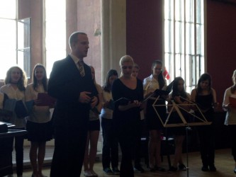 A nem éppen ideális kora délutáni időpont, és a viszonylag kis hírverés ellenére a díszterem szinte teljesen megtelt, egy-két osztály majdnem teljes létszámban képviselte magát. Az előadást iskolánk tanulói kezdték. A kórustagok komolyzenei művekkel kápráztatták el a közönséget. Ezt követően a 28 tagú, gyönyörű hangú lányokból és két fiúból álló dán kórus énekelt, mely, mint később megtudtuk, először szerepelt külföldön. Műsorukat modern amerikai popslágerekkel kezdték. Hallottuk többek között a mindenki által kedvelt Hallelujah egyik feldolgozását, valamit egy amerikai film betétdalát is, a Cup Songot. De ezzel még nem ért véget a produkciójuk, mert dánul, sőt még magyarul („Még azt mondják nem illik”) is énekeltek. Az előadást Benjamin Britten „The Salley Gardens” című dala zárta, melyet a két kórus közösen adott elő. A két énekkar - bár egyszer sem gyakoroltak együtt -, az előadással rendkívüli sikert aratott.