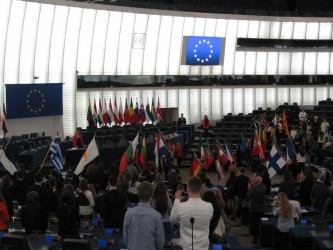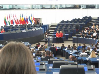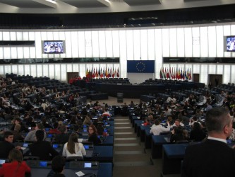Másnap reggel elindultunk a Kehltől 6,5 km-re lévő Strasbourgba. Amikor megérkeztünk az Európai Parlamentbe, egy kis reggelivel fogadtak minket, majd az ülésterembe vezették a résztvevőket. Az Európai Unió 24 tagországából érkeztek diákok az Euroscola napra. Az ülésteremben minden tagország nevében néhány diák tartott egy kisebb bemutatót, amelyben ismertették a saját országukat, illetve iskolájukat. Minket Kincses Ildikó 6.b osztályos tanuló képviselt.