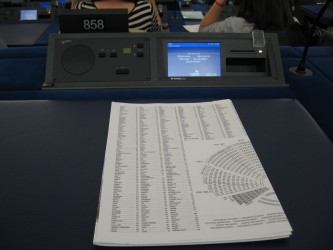 Ebéd után a munkacsoportok (amelyekbe már az iskolában beosztottak minket) összeültek a bizottsági termekben, és megvitatták a nézőpontjaikat. Minden munkacsoportnak volt egy-egy aktuális témája, mint például a környezetvédelem vagy a fiatalok foglalkoztatása. A munkacsoportok ülései után visszamentünk a Parlament üléstermébe, ahol a kisebb csoportokban megalkotott beszámolókat ismertették a szóvivők, majd a saját véleményünk alapján szavazhattunk a javaslatok mellett vagy ellen. A program lezárásaként meghallgattuk az Európai Himnuszt, majd búcsút vettünk a Parlamenttől.