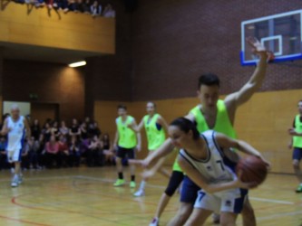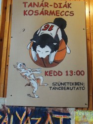 Egy gyors taktikai megbeszélés után felállt a két kezdőcsapat, és kezdetét vette a játék. A labdát először a tanároknak sikerült megszerezniük, azonban az első támadásból még nem született kosár. A felszabadító első pontot Vaskó tanár úrnak sikerült megszereznie, majd nem sokkal később duplázott. A diákok nem számítottak ilyen erős kezdésre, de persze nekik is sikerült többször is betalálni.