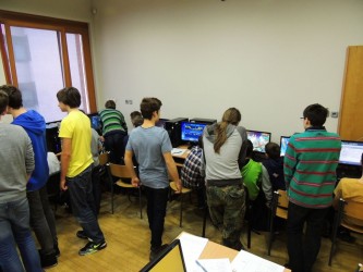 Ahogy felértünk a felső szintre, áthatolhatatlan tömeg fogadott minket, annak ellenére, hogy 15 perccel a kezdés előtt érkeztünk. Nem számítottunk rá, hogy ennyire sok videojáték-kedvelő diákba botlunk. A rendezvény a teljes felső szintet igénybe vette, a termeket és az előteret is beleértve.