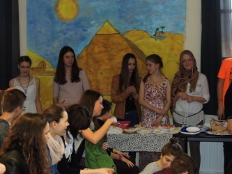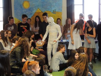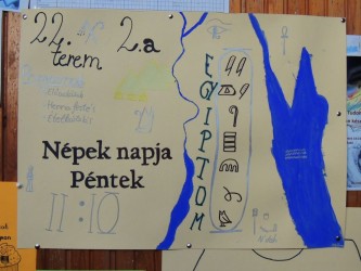 Az idei tanévben a 2.a osztály jóvoltából közelebbről megismerhettük az egyiptomi kultúrát. A tanulók jellegzetes egyiptomi jelmezben, és a korra jellemző sminkben fogadták az érdeklődőket. Az előadás keretében 3 témáról hallhattunk. Az első rész a piramisokról szólt, amelyben közelebbről megismerhettünk a csodás, óriási, több tízezer éves építményeket. A másodikban a mumifikálás rejtelmes szokásait tárták fel előttünk. Az utolsó előadás az Észak-Afrikai ország mai helyzetét mutatta be. Az előadások alatt váratlanul, a szekrény mögül egy "múmia" riogatta a közönséget, kisebb-nagyobb sikerrel. A teremben különböző megállókat hoztak létre, ahol hennafestésre, illetve különböző egyiptomi ételek (magvak, pita, falafel, baklava) megkóstolására volt lehetőség.