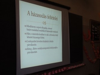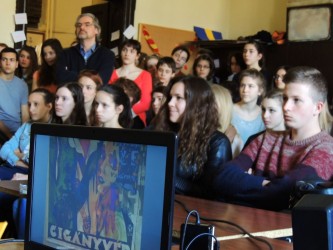 A cigány kultúrát a 4.a osztály ismertette meg velünk. Három kis videóval készültek, az első egy összefoglaló volt az ősi cigány szokásokról, míg a másodikban néhány ismert sztereotípiát egészítettek ki. A harmadikban a cigány zenéről hallhattunk pár szót. Ezek után egy egyéni előadást hallhattunk Mezei Zsombortól, aki a cigányok rokoni kapcsolatairól beszélt, amik erősen eltérnek a megszokottaktól. Majd egy krumplipucoló verseny vette kezdetét, melynek győztese egy fel nem fedett díjjal lett gazdagabb. A verseny szurkolóinak pogácsát és csokitortát kínáltak fel, illetve karkötő készítésére volt lehetőségük. Amik igazán érdekessé tették a 4.a előadását, azok az ajtóra lógatott cédulák, melyeken cigány szavakat olvashattunk, hátoldalukon pedig magyar megfelelőjüket. (pl. teja-tea, bakriso-bárány, csájol-tetszik)