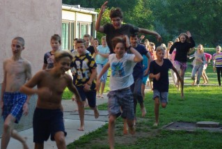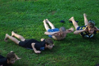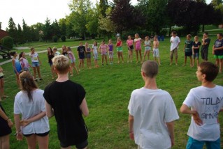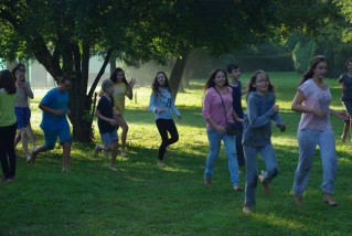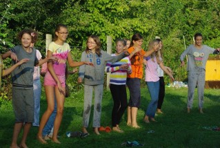 Másnap reggel fél hétkor ébresztettek fel a nagyok, és biztosították a felejthetetlen gólyatábor élményét. Sámánjóga következett. Hát igen, pizsamában felülés a harmatos fűben, és a „telepesek” lövöldözése vízipisztollyal nem volt túl kellemes, de ez sem rontotta el, sőt oldotta a hangulatot.