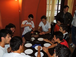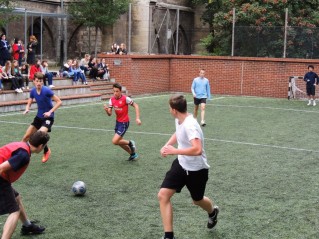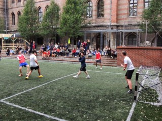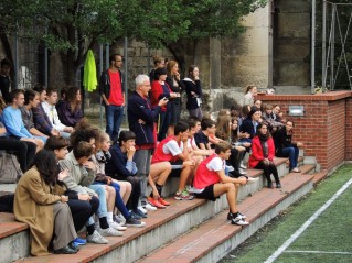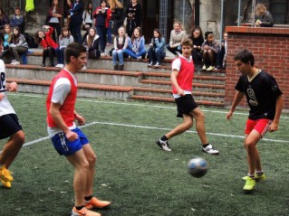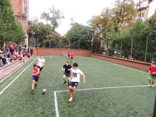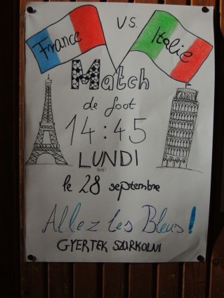 Iskolaszerte plakátok hirdették a sporteseményt, ahol jó hangulat, két elszánt fél, és mindenféle ropogtatnivaló várta a nézőket. A két lelkes szurkolótábor biztató és hangos kiáltásainak kereszttüzében az olasz csapat rövidesen megszerezte a vezetést. Mindkét fél elszántan küzdött, szép gólokat láthattunk.