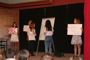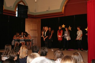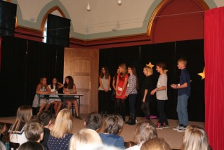 A gólyahét megkoronázásaként került sor a gólyabálra. Ennek keretében mindkét elsős osztály vidám színdarabbal készült a szülők és a diákok számára. Az előadások szervezői mi, vagyis a gólyák voltunk, akik méltán arathattuk le a babérokat.