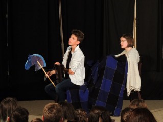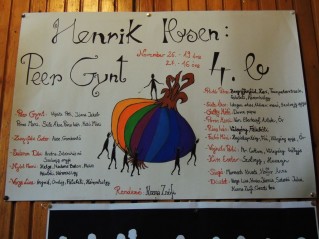 Az előadás során olyan érzésem volt, mintha az osztály tagjai bábjátékosok volnának, mindenki egységesen farmerban és fekete pólóban, akik egy-egy szimbolikus ruhadarabbal (pl.: Peer Gyntnél a fehér ing, a manóknál a csíkos farok és így tovább…) maguk válnak a bábokká, és így jelenítik meg a szereplőket. Így tehát egyáltalán nem volt zavaró, hogy egy színész több szerepet is játszik, sőt a Peer Gynt szerepét megtestesítő hat fiú kontrasztja csak még jobban szemléltette Peer csapongó és változékony természetét. Ezúton is szeretnék gratulálni a fiúknak a kiemelkedő és nagy összhangban lezajlott szereplésükért.