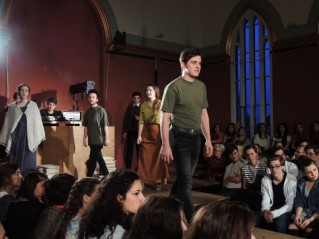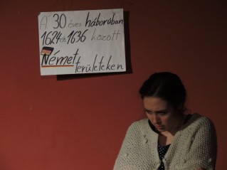 A szűk létszámú próbák a darabok színpadra állításakor is megmaradtak, mígnem pár hét után egybeengedtük ezt a hatalmas szörnyeteget, a háborúkat, és végre együtt próbált a 45 ember. Ennél a létszámnál már beléptek az olyan létfontosságú apróságok, mint a jelenetek sorrendje, ki mikor pakolja át az idén sem szokványos (spanyol barokk színházat idéző) színpadot, tehát a leginkább egymást segítő, kiegészítő tényezők. És a leglényegesebb: felvegyük a hangulatát a szétdarabolt, hullámzó érzelmekkel áthatott felvonásoknak.