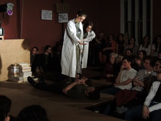Az egyik utolsó hétvégi próbán érkeztünk el ahhoz az egészen piciny aprósághoz, a "varázsütéshez", ha úgy tetszik, ami végül olyanná tette a darabot, amilyen lett. Az utolsó kihívás adott volt: ne felejtsük el, hogy a szétdaraboltság ellenére mi most egy darabot játszunk.
