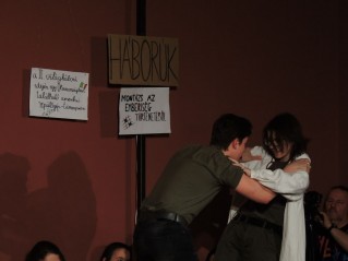 Viszont a következő nagy ellenségünk már kezdte megmutatni a fogát: az idő. Nehéz szívvel húztunk ki egyre több és több szöveget, annak érdekében, hogy az eleve is szokatlanul hosszúra tervezett három felvonásunk ne legyen több 4 óránál.