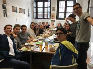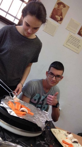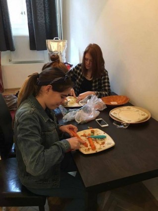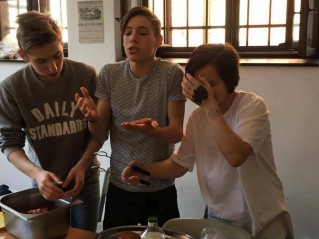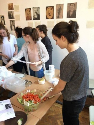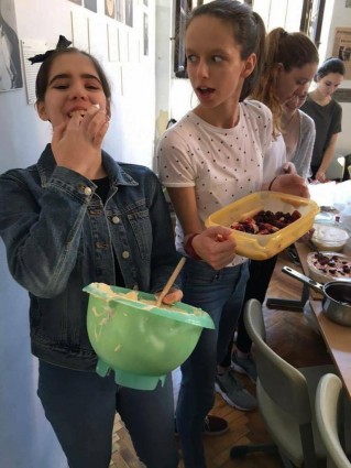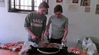 Amint beszabadultunk, kisebb csoportokban azonnal nekiláttunk az ételek elkészítésének Berkó tanárnő segítségével.
