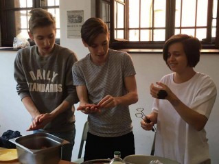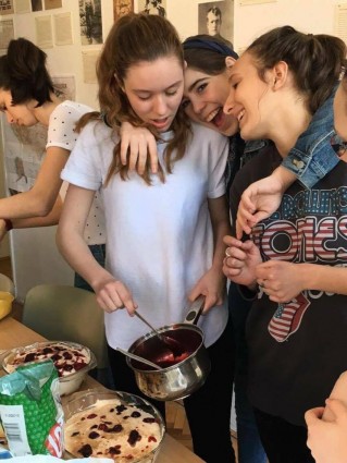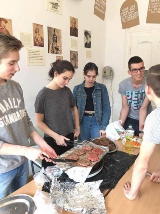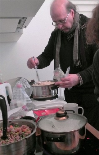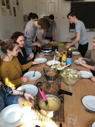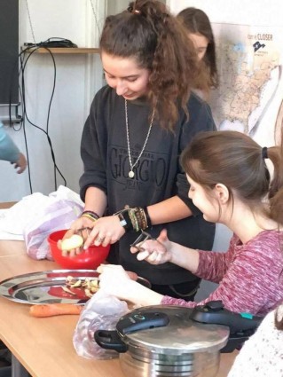 Csütörtökön valamivel 12 után hozzávalókkal, konyhai eszközökkel, különböző méretű edényekkel sorakoztunk fel a kémia teremmel szemben lévő kis lakás előtt.