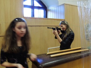 A játék elején a résztvevő csapatokat két részre osztották: nyugati és keleti csapattagokra. Jómagam szerencsére a nyugati oldalra kerültem, ahol nem csak furfangos kérdéseket kellett megoldani, hanem azokat még kódolva is kellett feltenni, nehogy rossz kézbe kerüljön az információ. Mindezt úgy kellett megtennünk, hogy tudtuk, ha hibázunk, az „őrök” tűzparancsot kapnak és élesre töltött vízipisztollyal lőnek ránk.