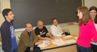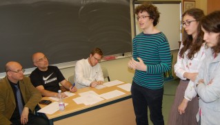A következő feladat keretében a két-két csapat vitázott egymással, a görög-perzsa háborúk athéni polgáraiként kellett a szárazföldi vagy épp a tengeri hadviselés mellett érvelniük. A vita előtt minden csoport átvonult a szomszédos terembe, és az épp felkészülő csapatoknak 4-4 percük volt megbeszélni a mondanivalójukat és stratégiájukat. Miután a tanárok visszakísérték őket, a vita is 4 percig tartott, fél-fél perces váltásokra felosztva. A szónokok nagyon jól teljesítettek, az érvek pontosak és logikusak voltak, és aki a teremben ült, sokat tanulhatott, ha odafigyelt.