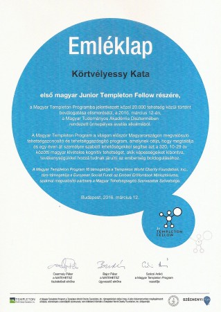 Körtvélyessy Kata, az 1. a tagja bekerült a tehetségazonosító és -gazdagító programba, amely a világon először Magyarországon valósul meg, a Templeton World Charity Foundation támogatásával.