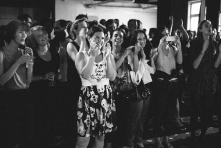 Ez azonban nem okozott problémát, a közönség csak lassan gyülekezett. Már fogalmaztam is magamban néhány súlyos gondolatot a Facebookon az "Ott leszek" gombra kattintás és az ezzel kifejezett szándék, valamint a fizikailag is létező térben megvalósított cselekvés közötti különbség mértékéről, de végül szerencsére megtelt a terem, így a világ egyelőre megmenekült ezen gondolatok kifejtésétől. A teremben több generációnyi toldys keveredett, harmincon felüliek csakúgy érkeztek, mint 1-2 éve végzettek, és persze számos jelenlegi tanuló is. A diákok szórakozásának tanári felügyelete érthető okokból (erdei iskola, osztálykirándulás pl.) sajnos kissé hiányosan, de végső soron azért megoldott volt.