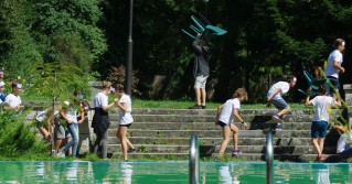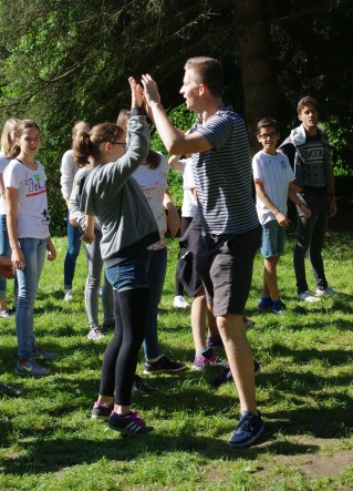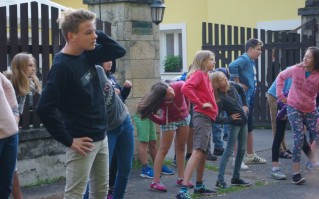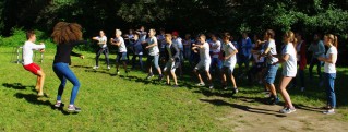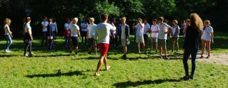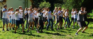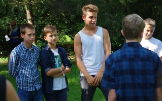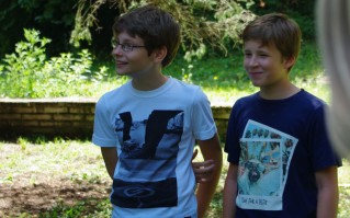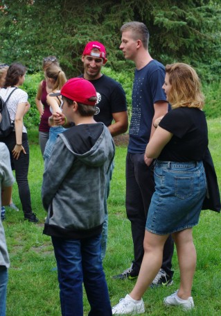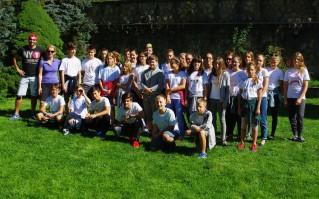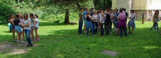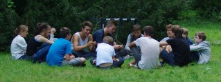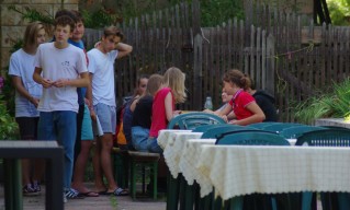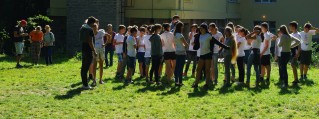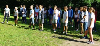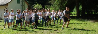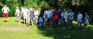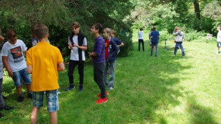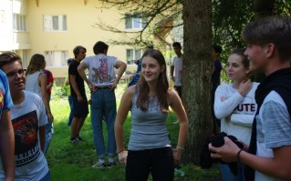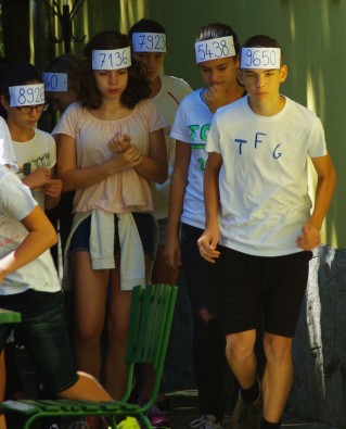 A Nyugatiból indultunk, jó nagy volt a nyüzsgés, szülők búcsúzkodtak a gyerekektől, az osztályfőnökök próbáltak minket összeterelgetni, sorban érkeztek a mentorok is. Végül elindultunk. Az egyórás vonatút után átszálltunk a kisvasútra, ami elvitt a szállásig. Megérkezésünket követően csapatokba osztottak minket, mi Barnit és Csongit kaptuk csoportvezetőknek, akik nagyon jó fejeknek bizonyultak a későbbiekben. Csapatnevünk a” Csütörtökig a Föld körül lett”, mert addig tartott a tábor, és a téma a kontinensek volt. Különböző állomások vártak bennünket, ahol más-más országokkal kapcsolatos feladatokat kellett megoldanunk.