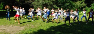 Vacsora után tábortüzet gyújtottunk. Hamarosan igazi tábori hangulat lett, előkerült két gitár és egy ukulele is. Természetesen innen sem hiányozhatott Kis Grófo, valamint mindenki kedvenc dala, a Nád a házam, pingvin! A tábortűz után mindenki nyugovóra tért, mely nem tartott sokáig, mivel hajnali kettőkor ébresztettek a kedves mentorok. Zsákba ugrást, és egyéb sorversenyeket játszottunk, majd csillagokat kellett keresnünk a fűben. Ezeket még most is keresnénk, ha nem derült volna ki, hogy a drága csoportvezetőink csak tréfából mondták, igazából nem rejtettek el semmit. Ezúton is köszönjük!