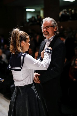 Az igazgató úr nyitóbeszédét követte a bál fénypontja, a varázslatos szalagozás. Az osztályok felszalagozása és a fényképkészítések után következett a nyitótánc, a palotás, amit a 6. a és b osztály közösen, tradicionális magyar viseletben adott elő.