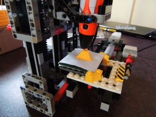 A 3D nyomtatás rövid történetének és technikai alapjainak bemutatása után a közönség működés közben is megtekinthette a legó elemekből készített nyomtatót. Az érdeklődők közelről is megcsodálhatták, ahogy néhány egyszerű alakzatot kinyomtatott a gép.