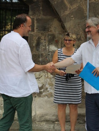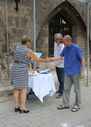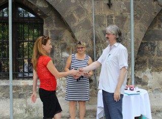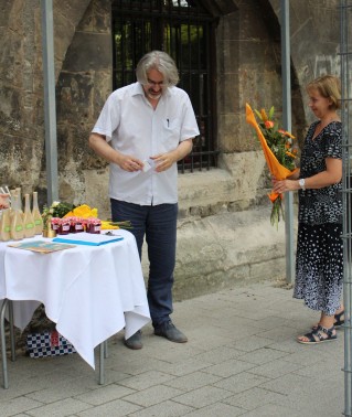 Először a tantestület két távozó tagjától búcsúztunk. Papp Judit 1991 óta tanít a Toldyban. Aligha túlzó állítás, hogy az azóta eltelt években az iskola egyik oszlopává vált segítőkészsége, pontossága és kiemelkedő munkabírása révén. Fájó szívvel, de megértéssel fogadtuk döntését, hogy a jövőben máshol folytatja pályafutását. A tanárnőtől - az igazgató mellett - a nevelőtestület is búcsúzott, ajándékunkat Molnár Péter igazgatóhelyettes adta át.