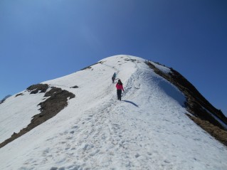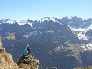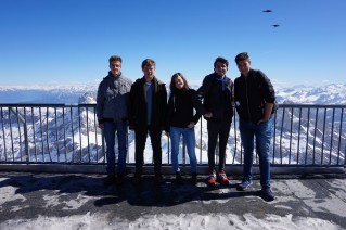 Egyszerűen elképesztő. Hó, napsütés, paplanernyők, friss levegő, 2000 méteres magasság (cserediákjaink állítása szerint ez épphogy csak hegy). És ilyen kilátás mellett ebédelni… Úgy terveztük, hogy a legmagasabb pontra felküzdjük magunkat, de a „Figyelem! Csak gyakorlott hegymászók erre alkalmas cipőben” tábla végül elriasztott minket, bár ez nem vett el az élményből.
