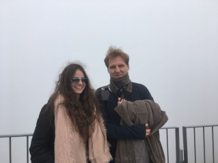 A történethez hozzátartozik, hogy minket, jó turistához méltóan, egy cseppet sem zavart a hegycsúcson állva, hogy a kilátás helyett már csak a mindent beborító ködöt láthattuk, azért elkészült a kötelező fotómennyiség. Még magáról a kilátásról is – bár nyugodtan fényképezhettünk volna ennyi erővel egy üres fehér lapot is. De hát a mai világban mindent meg kell örökíteni.