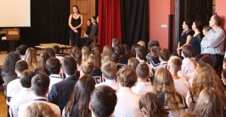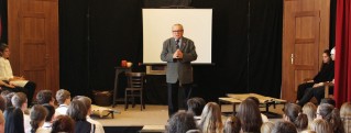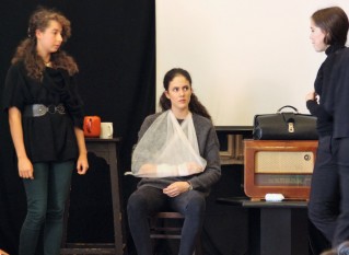 A díszteremben dramatikus játékot adtak elő az 5. b osztály következő tagjai: Benedek Zsófi, Buru Domonkos, Faragó Berta, Faragó Emma, Faragó Tamás, Foitl Emília, Kenderesi Manna, Kiss Réka, Kovács Bendegúz, Móri Blanka, Németh András, Pónya Ágnes, Pyszny Zsombor, Szabó Márk; a technikai hátteret Barta Ágoston és Bajnok Vencel (ő negyedik évfolyamos hallgató) biztosította. Köszönet illeti őket azért, mert mozgalmas és nehéz időszakban (a fakultációk indulása, a svájci diákcsere és a Színjátszó Fesztiválra való fölkészülés fázisai után és között) viszonylag rövid idő alatt kellett felkészülnünk az iskola egésze előtti bemutatókra, s mindenki komolyan vette a feladatot.
