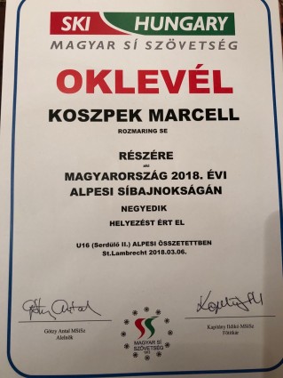 - Magyarország 2018. évi Országos Alpesi Síbajnokság csapatverseny: II. helyezés,