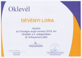 Az eredményhez szeretettel gratulálunk Lorának és tanárának, Léránt Erikának!