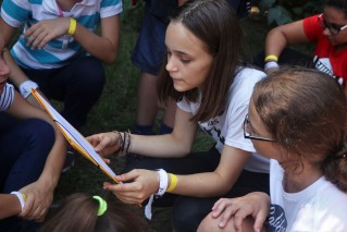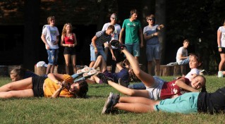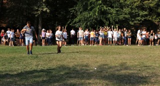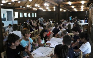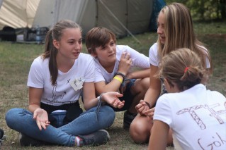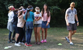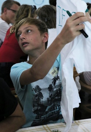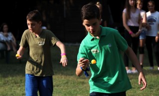 Ezután rögtön kezdődtek a foglalkozások, a 89 (2-en nem jöttek el) friss toldyst 10 darab 9 fős csoportba osztottunk el, csapatonként 3-4 végzőssel. Az egész tábor viking tematikát kapott, így minden csapat egy szín mellé egy saját rúnát is kapott. A rúnák voltak a karakterek a vikingek írásformájában, mint egy abc, ahol minden jel egy-egy szót vagy fogalmat szimbolizált. Az ismerkedős játékok után nem maradhatott el a megszokott pólórajzolás sem, majd ebédeltünk. Délután sorversenyt tartottunk, ami szuperül sikerült az ötletes csapatfeladatoknak köszönhetően. Este természetesen volt tábortűz és éneklés, és ahogy a Toldyban szokás, a ZTM sem maradhatott ki az elsősök beavatásából, ami az első estén Mamma Mia tematikát kapott.