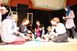 Viszont a betoldott mondatok, jelenetek jól voltak megírva, adagolva és eljátszva, ez a dramaturgok, Nagy Liza és Fabricius Márk, valamint a szereplők munkáját dicséri. Ha már szereplők, itt is akadtak gondok: nem is elsősorban a színészi képességekről beszélek, hanem arról, hogy gyakran akkor is a színpadon kellett lenniük, amikor nem szólaltak meg és ezeket a helyzeteket nem tudták mindig jól megoldani. Ebben mutatkozott meg a leginkább az, hogy a 3. b talán túl nagy fába vágta a fejszéjét. Ami még hiányzott, és nagyon fontos lett volna, az a karakterfejlődés. Még erősebb lehetett volna a darab, ha látjuk a karakterek személyiségének eltorzulását a történet végére.